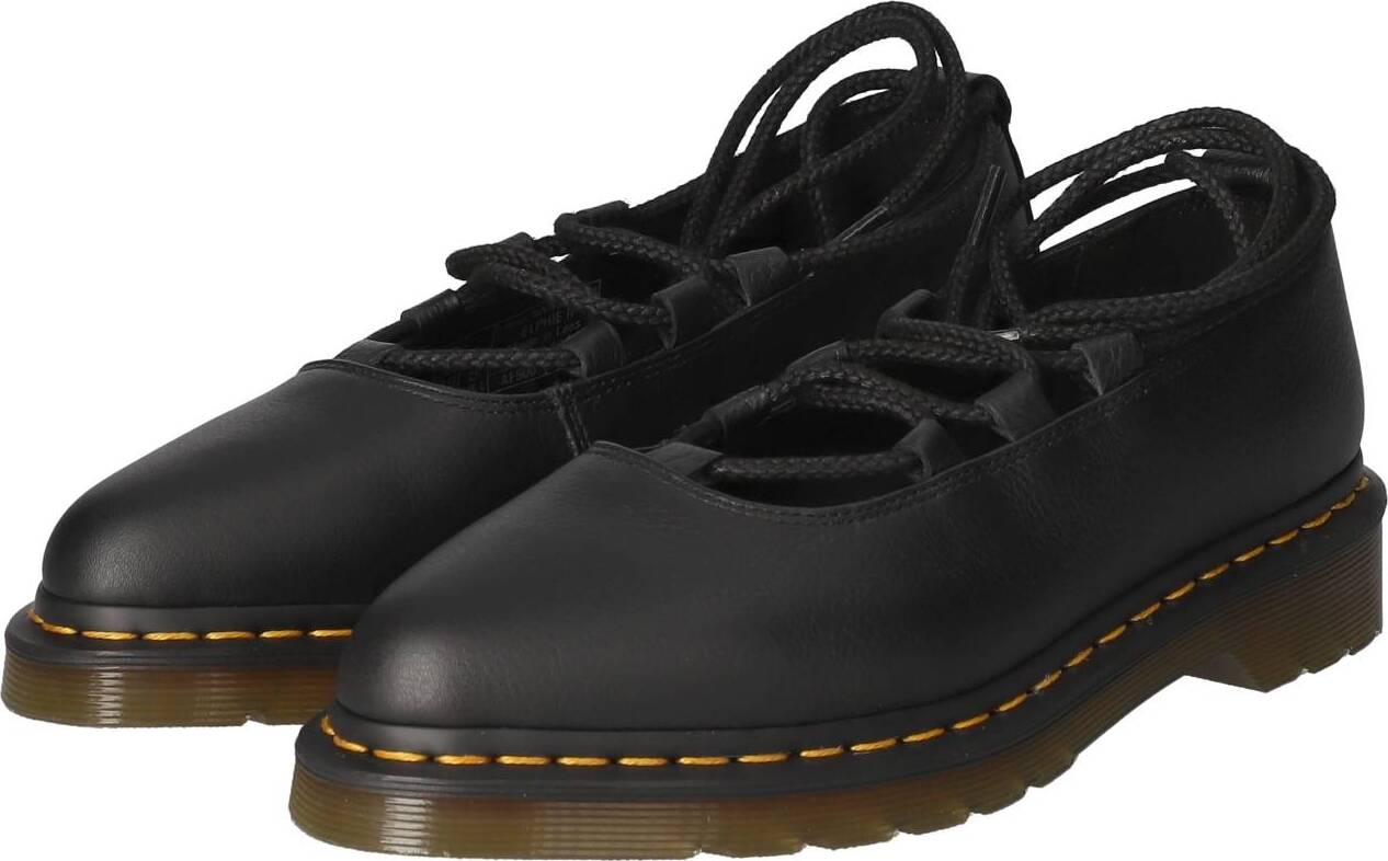 Entdecken Sie die unverwechselbare Kombination aus Style und Komfort mit den DR. MARTENS Elphie Ballerinas in elegantem Schwarz. Dieser modische Plateauschuh besticht durch eine extravagante Schnürung, die jedem Outfit den perfekten edlen Touch verleiht, sowie durch die charakteristische Kontrastnaht an der Sohle, die den klassischen Dr. +