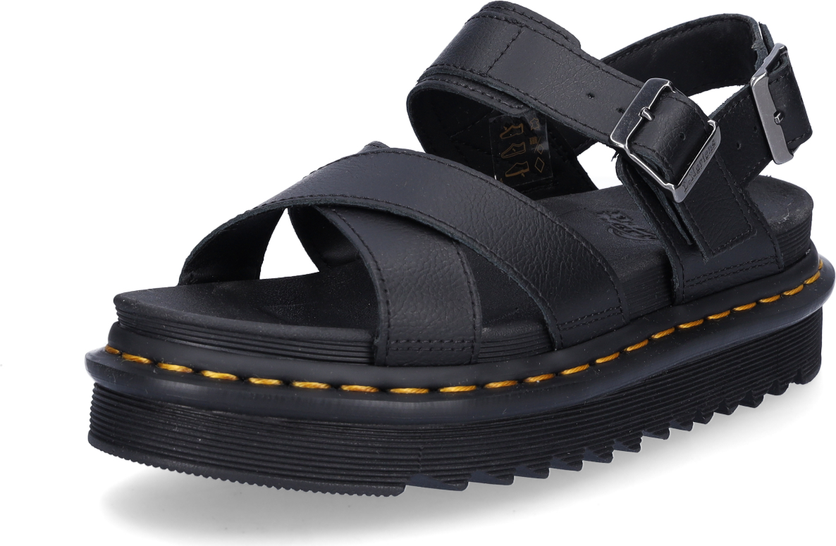 Erleben Sie den perfekten Mix aus Style und Komfort mit der DR. MARTENS Voss Plateausandale in elegantem Schwarz. Diese trendige Sandale überzeugt durch eine robuste, extravagante Plateausohle, die jedem Outfit einenuddy und modernen Twist verleiht. +