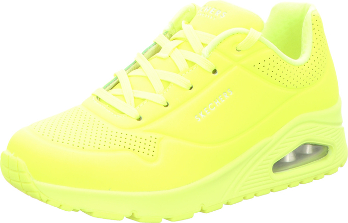 Die Skechers »Uno Night Shades Sneakers Low« bringen Pepp in jedes Outfit. Mit ihrer knalligen neongelben Farbe und dem stylischen Schnitt sind sie der Hingucker auf der Straße. Hochwertiges Textilmaterial schmiegt sich weich an den Fuß und sorgt für einen angenehmen Tragekomfort. Mit dem flexiblen Gummi der Laufsohle ist man rutschfest unterwegs. +
