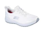 Der Skechers SQUAD SR Berufsschuh ist der perfekte Schuh für lange Arbeitstage, bei denen du den ganzen Tag auf den Beinen bist. Mit einer weißen Farbe und sportlichem Stil kannst du dieses Modell zu jeder Art von medizinischer oder pflegerischer Arbeitskleidung tragen. Das Obermaterial ist aus einer langlebigen Mischung aus Synthetik und Textil gefertigt, und das Innenmaterial besteht aus einem atmungsaktiven Textil, das deine Füße kühl und trocken hält. +