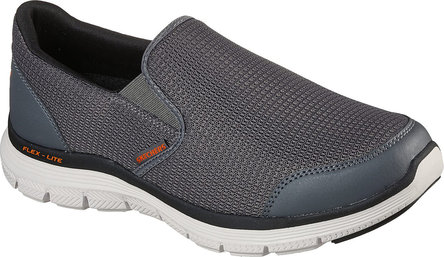 Erleben Sie höchsten Komfort und ein federleichtes Tragegefühl mit dem Skechers Flex Advantage 4.0 Tuscan Slipper. Das schicke graue Design vereint Mesh und Lederimitat zu einem sportlichen Look, während die Gummizug-Schlupffunktion das An- und Ausziehen spielend einfach macht. Mit der Air-Cooled Memory Foam-Einlegesohle genießen Sie eine optimale Druckentlastung und Stoßdämpfung, die gleichzeitig atmungsaktiv ist. +