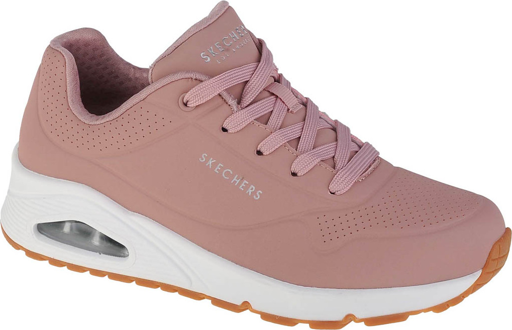 Der Skechers Uno Sneaker in Pink ist ein absoluter Blickfang und perfekt für alle, die sich in ihrer Schuhwahl von der Masse abheben möchten. Das Obermaterial besteht aus hochwertigem Durabuck-Synthetik, das nicht nur äußerst strapazierfähig ist, sondern auch einen modernen Look verleiht. +