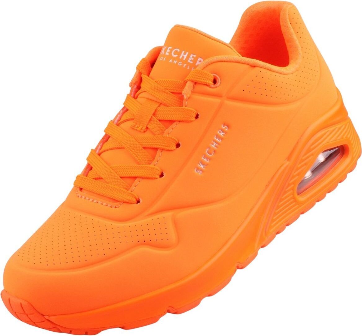 Die Skechers »Uno Night Shades Sneakers Low« Sneaker in einem frischen Orange bringen Farbe in deinen Alltag! Ob zum Sport, zum Stadtbummel oder zum Treffen mit Freunden, diese Sneakers sind immer ein Hingucker. Der Schnürverschluss sorgt für einen sicheren Halt am Fuß und das anpassungsfähige, textile Polyester-Futter macht das Tragen besonders angenehm. +