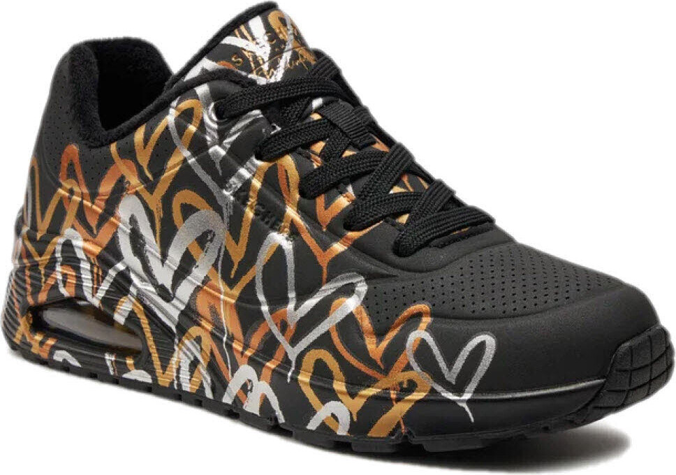Der Skechers UNO - METALLIC LOVE Sneaker ist die perfekte Wahl für modebewusste und sportliche Frauen. Mit seinem trendigen Metallic-Print in Schwarz zieht dieser Sneaker definitiv alle Blicke auf sich. +