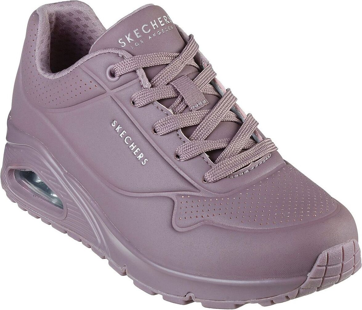 Der Skechers Uno - Stand on Air Wedgesneaker in der Farbe lila ist ein absolutes Must-Have für jeden Schuhliebhaber. Mit seiner feinen Perforation und dem Obermaterial aus Lederimitat strahlt der Schuh eine beeindruckende Eleganz und Einzigartigkeit aus. +