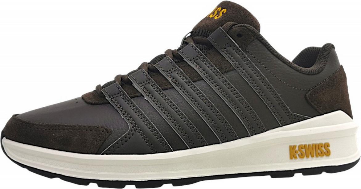 Die K-Swiss VISTA TRAINER Sneaker in dunkelbraun sind ein absolutes Must-Have für alle Schuhliebhaber. Mit ihrer Schnürung bieten sie nicht nur eine individuelle Passform, sondern ermöglichen auch kreative Schnürmethoden, um einen echten Hingucker zu kreieren. Das hochwertige Obermaterial aus Leder macht die Schuhe nicht nur besonders robust, sondern verleiht ihnen auch einen edlen Look. +