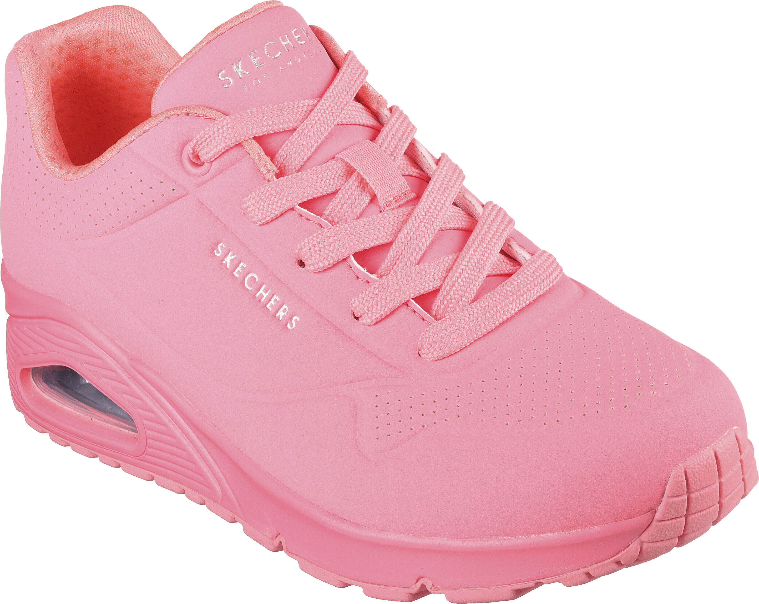 Der Skechers Trainingsschuh in der Farbe Koralle ist der perfekte Begleiter für dein aktives Training. Mit seiner eleganten grauen Farbe sorgt er für einen modernen und stylischen Look, der in jedem Fitnessstudio auffällt. +