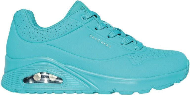 Der Skechers Uno - Stand on Air Wedgesneaker ist ein absolutes Must-Have für alle Sneaker-Liebhaberinnen! Mit seiner traumhaften türkisen Farbe und der feinen Perforation ist er nicht nur ein optischer Hingucker, sondern auch äußerst praktisch. +