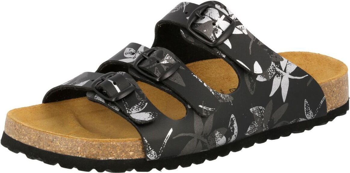 Diese schwarze Lico Pantolette Bioline Leave für Damen ist der perfekte Begleiter für alltägliche Aktivitäten. Sie besteht aus hochwertigem Synthetikmaterial und bietet dank der verstellbaren Schnallen einen leichten und bequemen Einstieg. Die Pantolette verfügt über eine Lederdecksohle, die für eine optimale Atmungsaktivität sorgt und sich angenehm an Ihre Füße anschmiegt. +