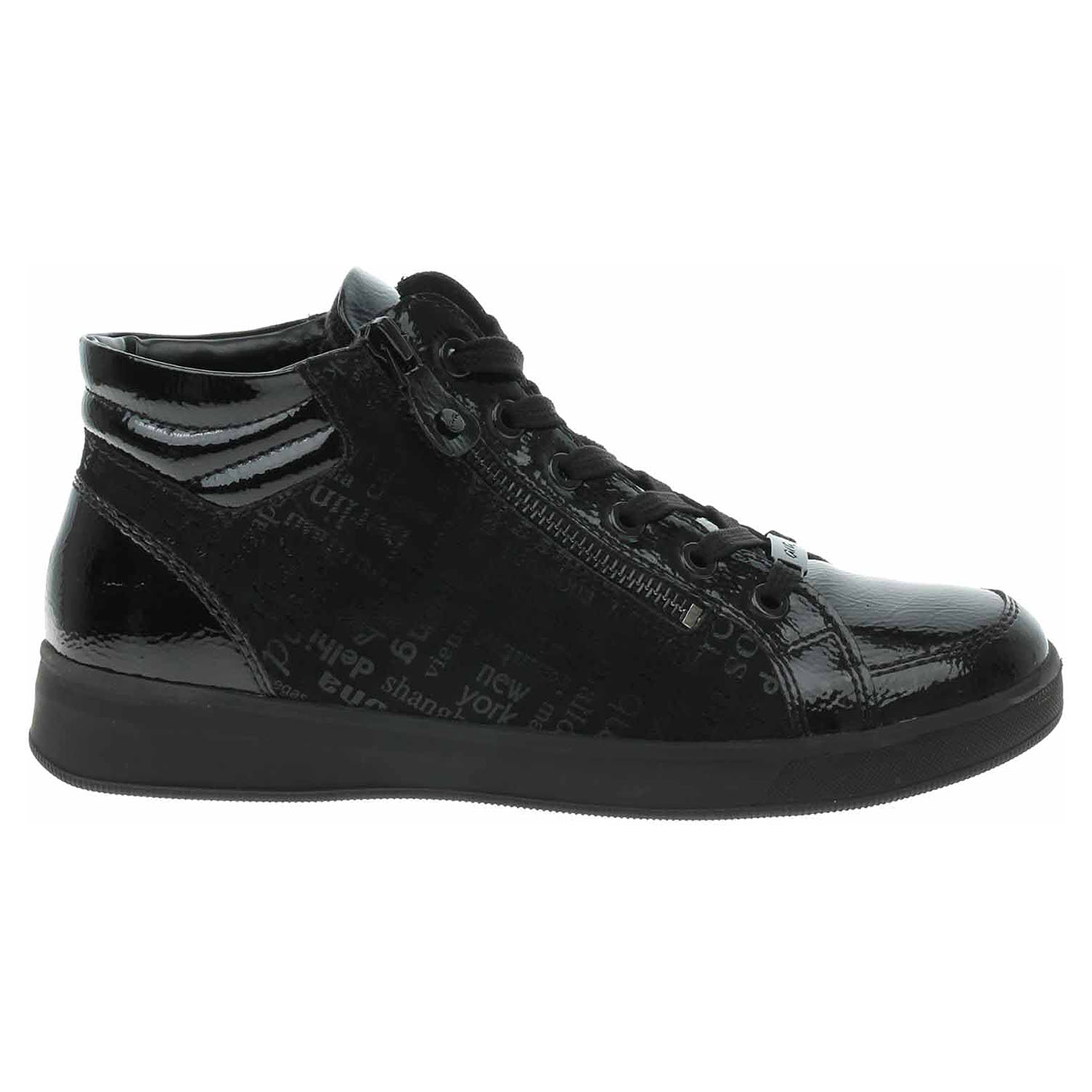 Die Ara "ROM" Schnürboots mit Lack-Details in schwarz sind der perfekte Schuh für den sportlichen Look im Herbst. Das Obermaterial besteht aus einer Kombination aus Lacklederimitat und Nubukleder und verleiht diesen Boots eine einzigartige Optik. Besondere Akzente setzen die Lack-Details an der Sohle und am Riemen. +