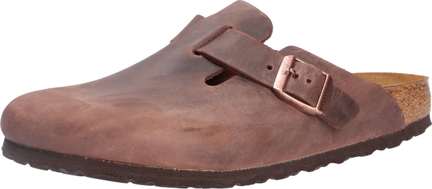 Der Birkenstock Boston Oiled Leather Hausschuh in Braun ist der Inbegriff von zeitlosem Komfort und Stil. Hergestellt aus dickem, geöltem Nubukleder, bietet dieser klassische Hausschuh einen luxuriösen Look und ein angenehmes Tragegefühl. Das anatomisch geformte Kork-Latex-Fußbett sorgt für optimalen Halt und Unterstützung für Ihre Füße, während die Veloursleder-Decksohle ein weiches Gefühl beim Gehen bietet. +