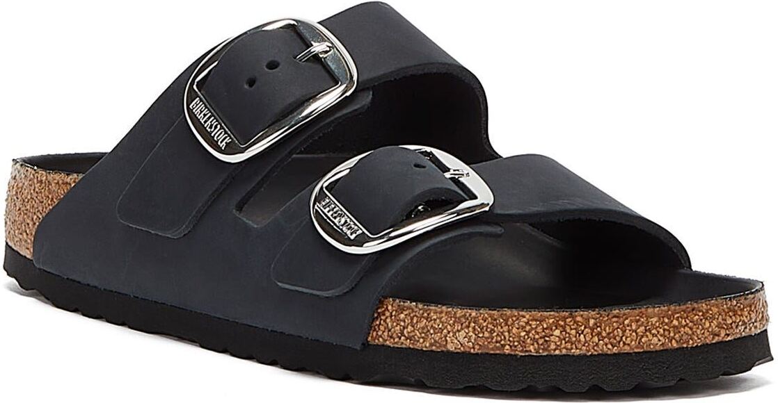 Die Birkenstock Arizona Big Buckle Sandale in schwarzem geöltem Nubukleder ist ein wahres Highlight für Damen. Die Sandale besticht vor allem durch ihre breiten Schnallen, die dem Schuh einen einzigartigen Look verleihen. +