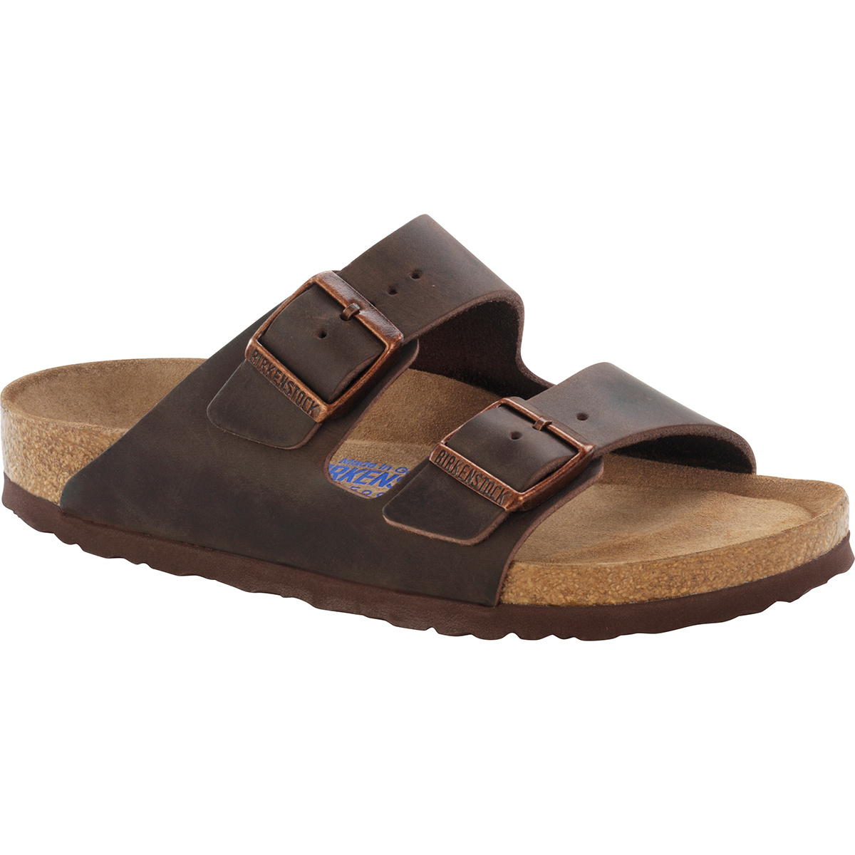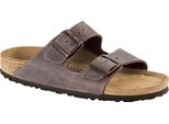 Genieße den Komfort und die Individualität der Birkenstock Arizona Weichbettung Herren Pantolette. Dieser klassische Hausschuh verbindet stilvolles geöltes Nubukleder mit einer handwerklichen Optik dank offenkantiger Verarbeitung. +