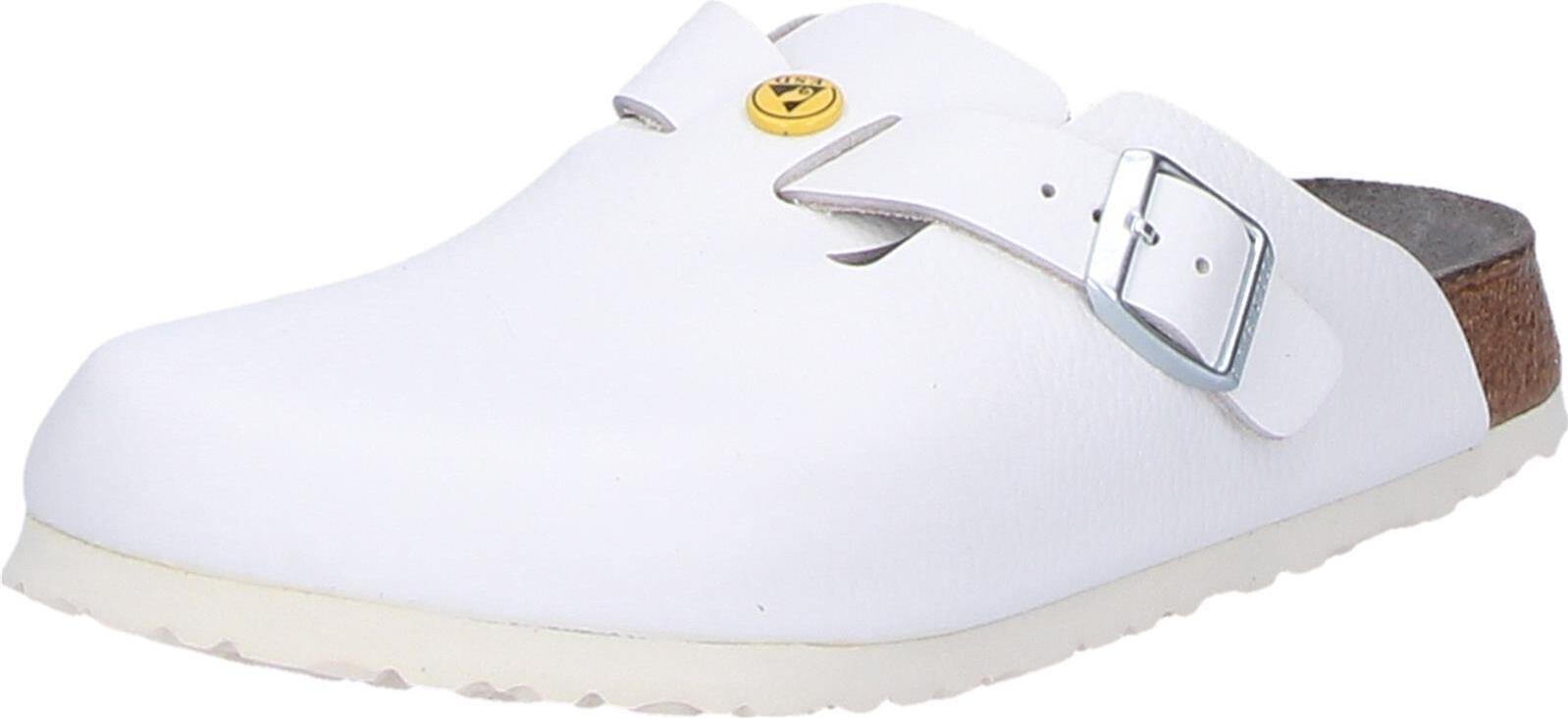 Hol dir jetzt den Birkenstock Professional »Boston ESD« Clog in weiß - der bequeme und funktionale Begleiter für deinen Arbeitsalltag! Das Obermaterial aus Leder ist isolierend, wasserabweisend und flexibel, während die Laufsohle fettbeständig und rutschhemmend ist. Einfach hineinschlüpfen und los geht's! Für noch mehr Tragekomfort empfehlen wir Funktionssocken und eine clevere Arbeitshose mit nützlichen Ausstattungsdetails. +