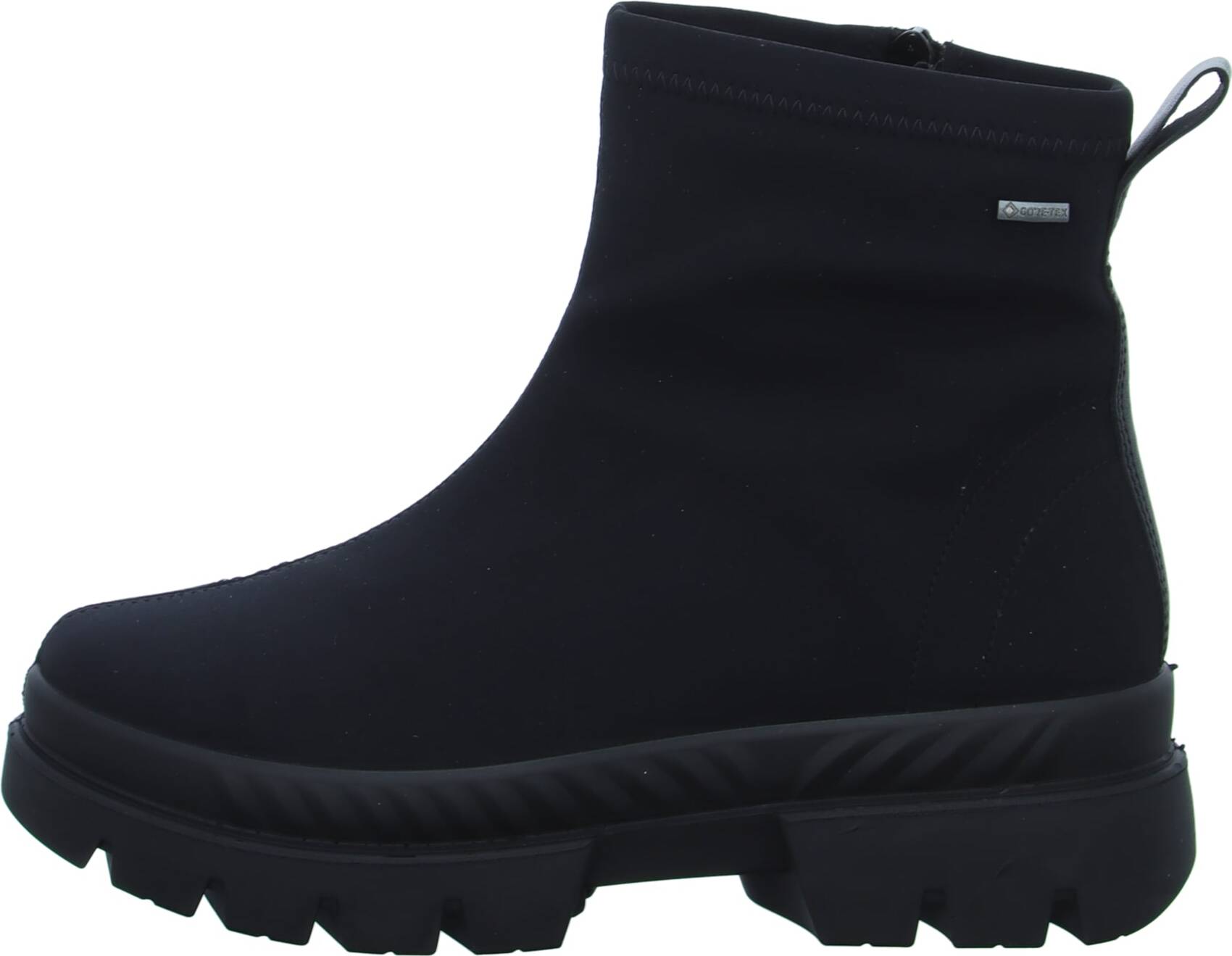 Erleben Sie winterliche Komfort-Exzellenz mit der Ara MOOD-GTX Winterstiefelette in klassischem Schwarz und legerer H-Weite. Diese Schuhe verbinden innovative Technologie mit praktischem Design, um Ihre Füße in der kalten Jahreszeit stets warm, trocken und bequem zu halten. Dank der hochwertigen GORE-TEX®-Membran sind die Stiefeletten dauerhaft wasserdicht, winddicht und atmungsaktiv, sodass Feuchtigkeit draußen bleibt und gleichzeitig überschüssiger Wasserdampf entweichen kann. Die poröse Membran sorgt für ein angenehmes Fußklima, selbst bei längeren Spaziergängen. +
