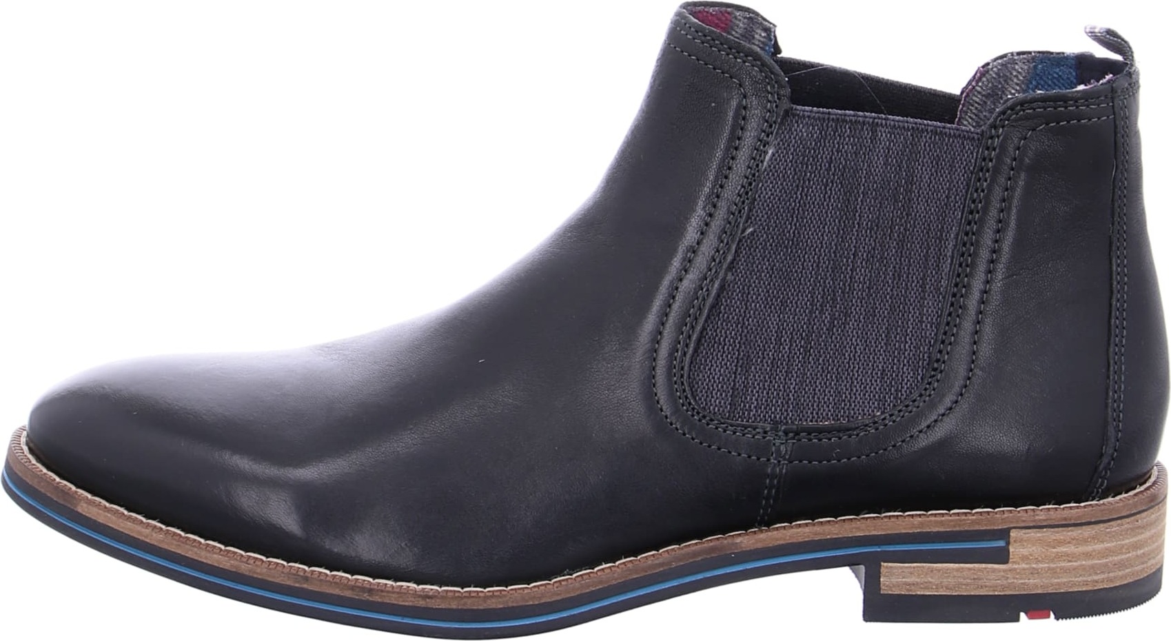 Dieser modische Chelsea Boot von Lloyd überzeugt mit braunem Glattleder und blauen Stretcheinsätzen. +