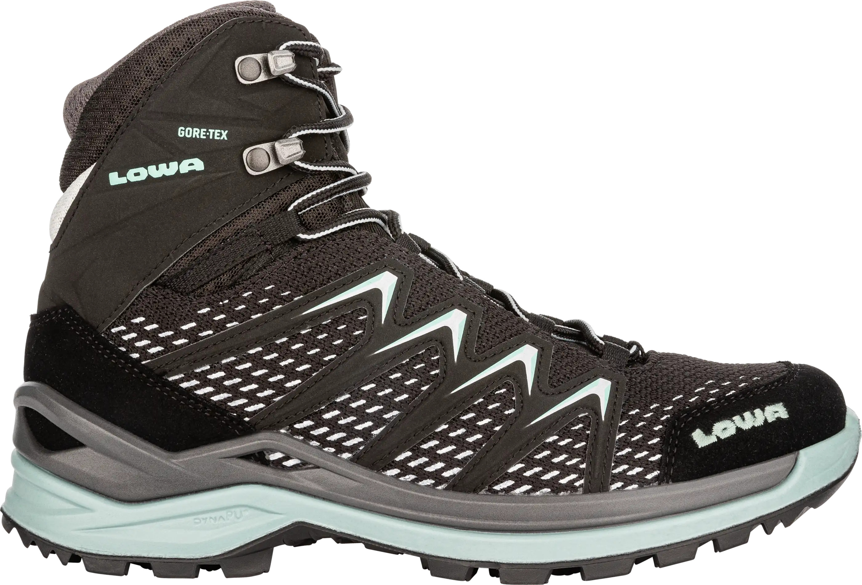 Der Lowa INNOX PRO GTX MID Ws Outdoorschuh in schwarz ist der perfekte Begleiter für anspruchsvolle Outdoor-Abenteuer. Mit seiner klassischen Schnürung und dem innovativen MONOWRAP-Rahmen bietet er eine optimale Stabilität und Unterstützung des Fußes an besonders beanspruchten Stellen. Die formbeständige DynaPU-Zwischensohle sorgt für eine herausragende Dämpfung und verleiht dem Schuh eine angenehme Leichtigkeit. +