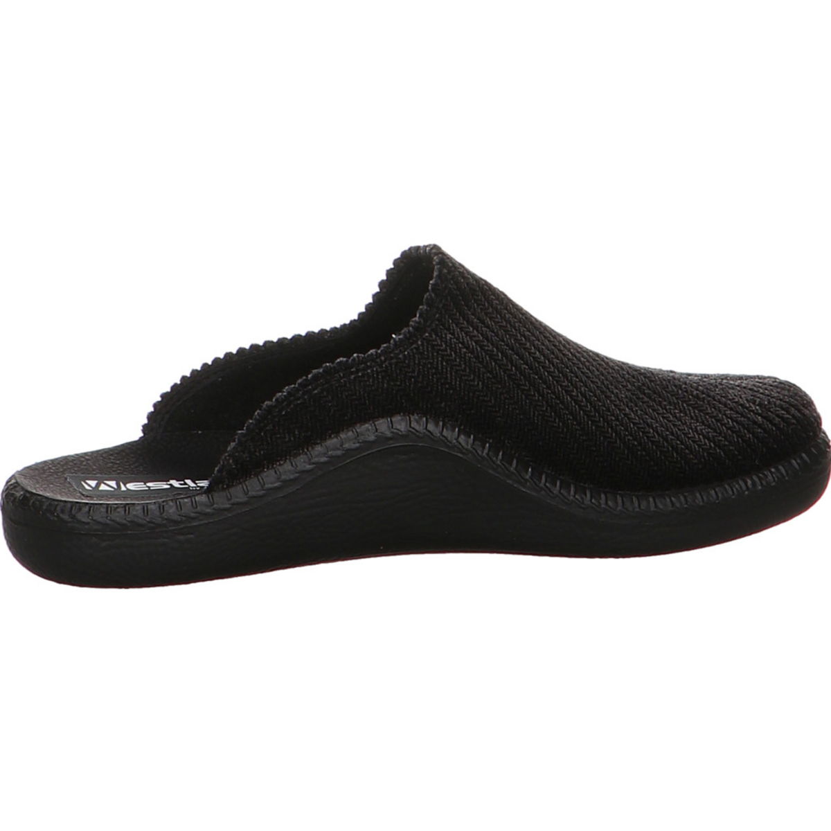 Erlebe ultimativen Komfort und Stil mit dem Westland Monaco 220 Hausschuh in Schwarz. Hergestellt aus atmungsaktivem Cord und mit einem hochwertigen Textilfutter versehen, hält dieser Hausschuh Deine Füße im Herbst angenehm warm. +
