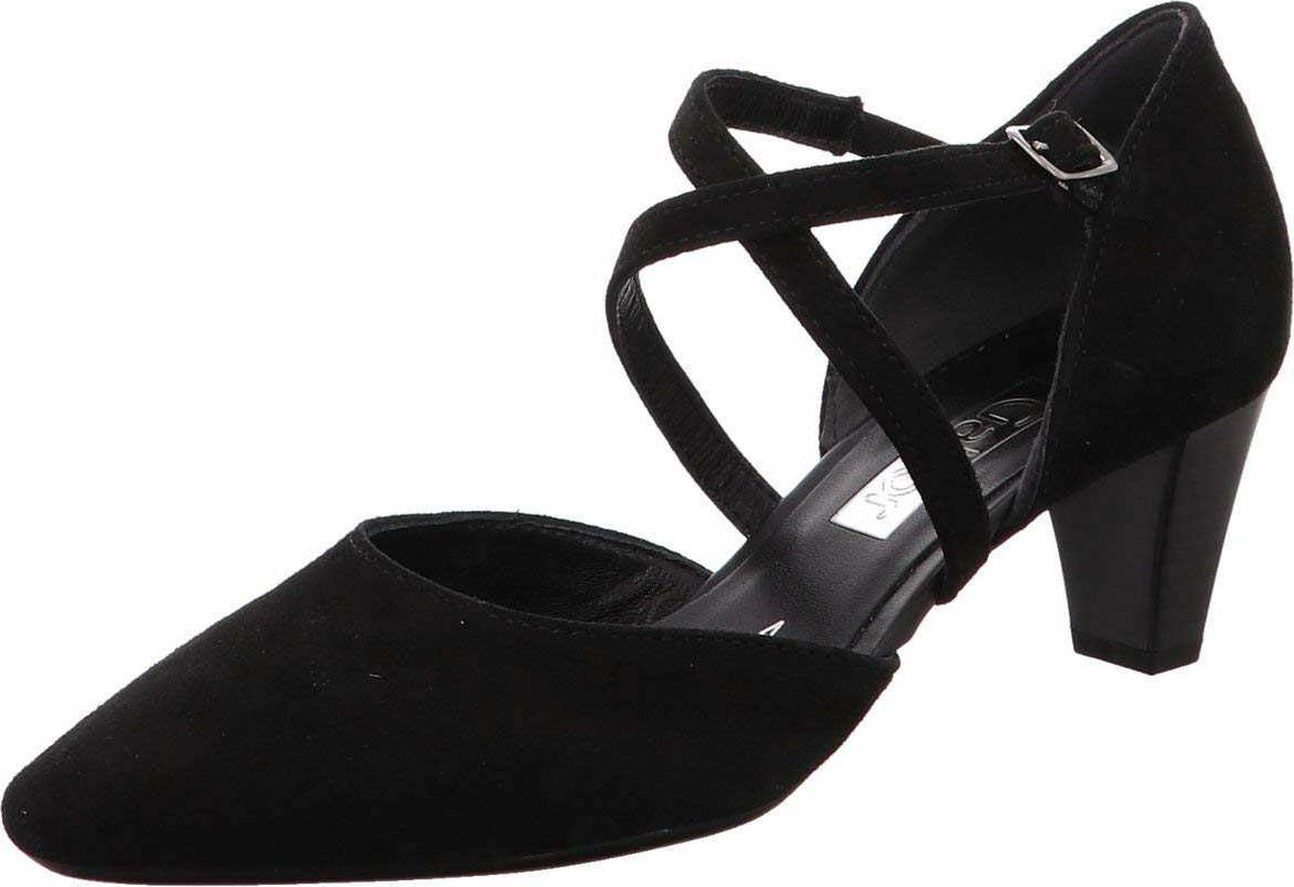 Die Gabor Spangenpumps in Schwarz sind ein absoluter Blickfang und lassen sich als Allrounder sowohl zu eleganten als auch zu Casual-Outfits tragen. Die Schuhe bestehen aus hochwertigem Rauleder, das nicht nur robust ist, sondern auch ein angenehmes Tragegefühl vermittelt. Das Innenmaterial ist ebenfalls aus Leder, was für eine optimale Atmungsaktivität und ein angenehmes Fußklima sorgt. +
