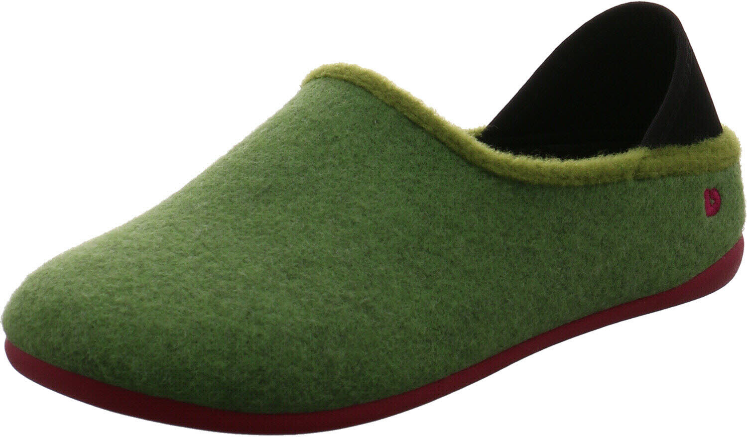 Made in Spain!Individuell sportliches, ökologisches Design trifft auf absolute Bequemlichkeit.Dieser Damen Hausschuh von Dinamic in Grün wurde aus Recyceltem Polyester aus PET Flaschen gefertigt und das Obermaterial hat die Haptik von Filz. +