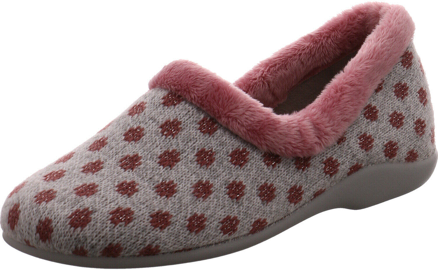 Dieser mollig warmen Damen Hausschuh des spanischen Herstellers Dinamic aus Textil in Grau mit süßen Punkten in Rosa mit Glitzer, sind perfekte Begleiter für entspannte Stunden in deinem Zuhause.Das Design im Punkte Look und der noch zusätzlich gepolsterte Einstieg, der besonders flauschig ist, runden das Wohlfühlkonzept ab.Die Gummisohle gibt perfekten Halt, so kommst du auch auf glatten Böden nicht ins Rutschen.Ein rundum gelungene Hausschuh, den du gar nicht mehr ausziehen willst!