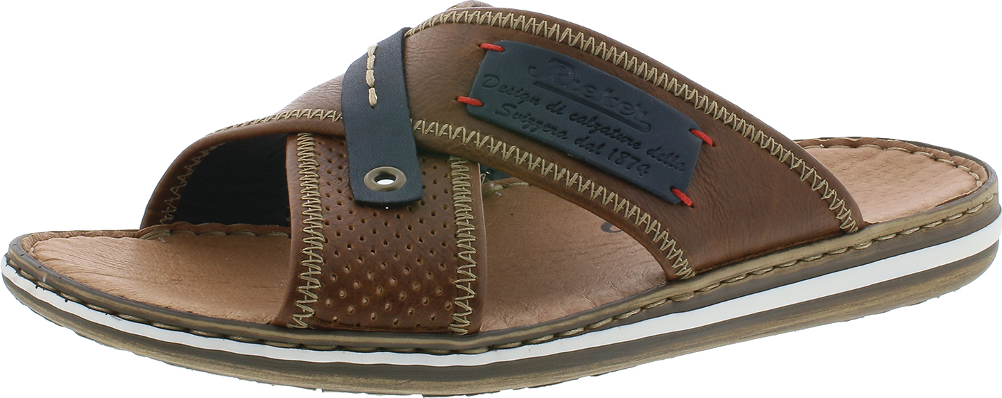 Die Rieker Pantolette in braun ist ein sportlicher Hingucker mit stylishen Logoapplikationen. Die Größe 40 entspricht dem EU-Größensystem. Das Obermaterial aus Lederimitat in Kombination mit dem Synthetik-Innenmaterial sorgt für einen angenehmen Tragekomfort. +