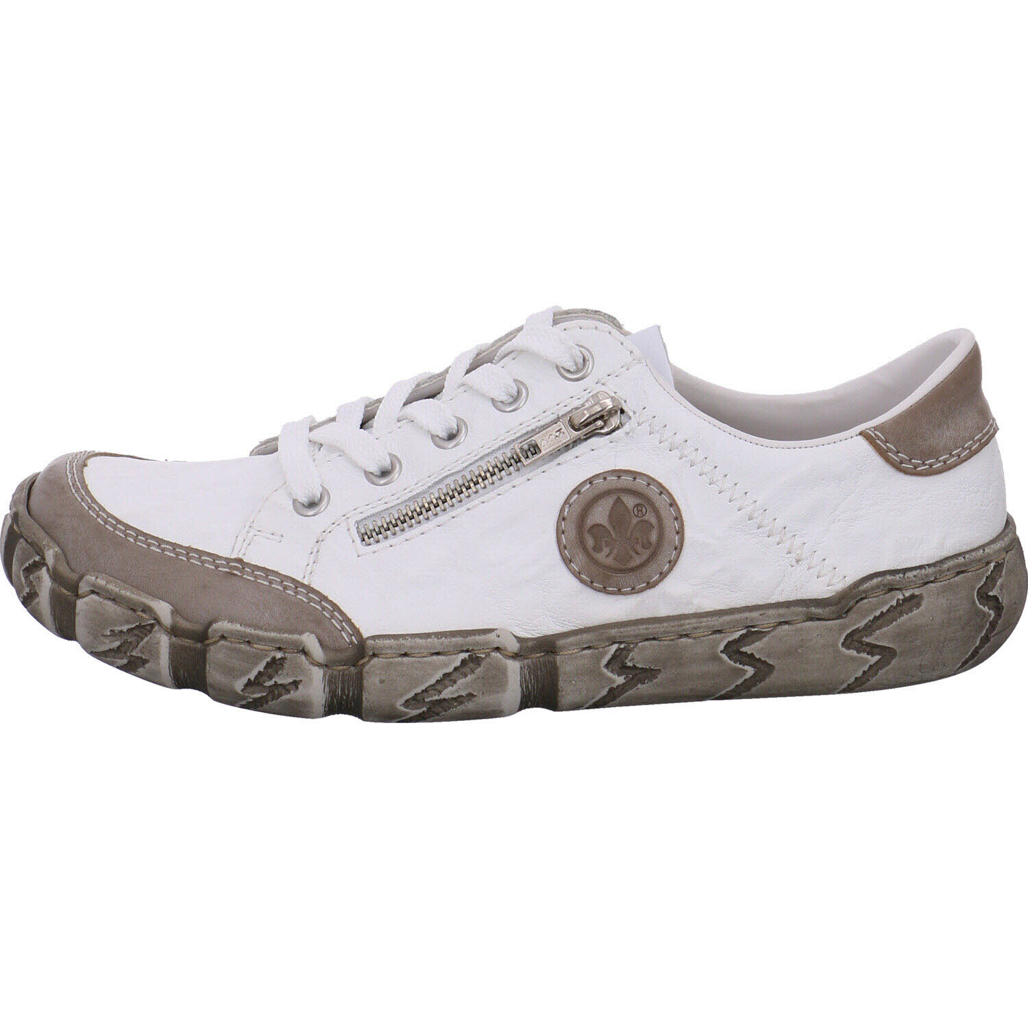 Der Rieker Sneaker mit Zierreißverschluss in weiß-taupe ist der perfekte Begleiter für alle modebewussten Frauen, die auf der Suche nach einem stilvollen Schuh sind, der nicht nur optisch überzeugt, sondern auch höchsten Tragekomfort bietet. Das hochwertige Obermaterial aus Leder verleiht dem Sneaker eine elegante Optik, die sich vielseitig kombinieren lässt. Das Innenmaterial aus angenehmem Textil sorgt für ein optimales Fußklima und ein bequemes Tragegefühl. +