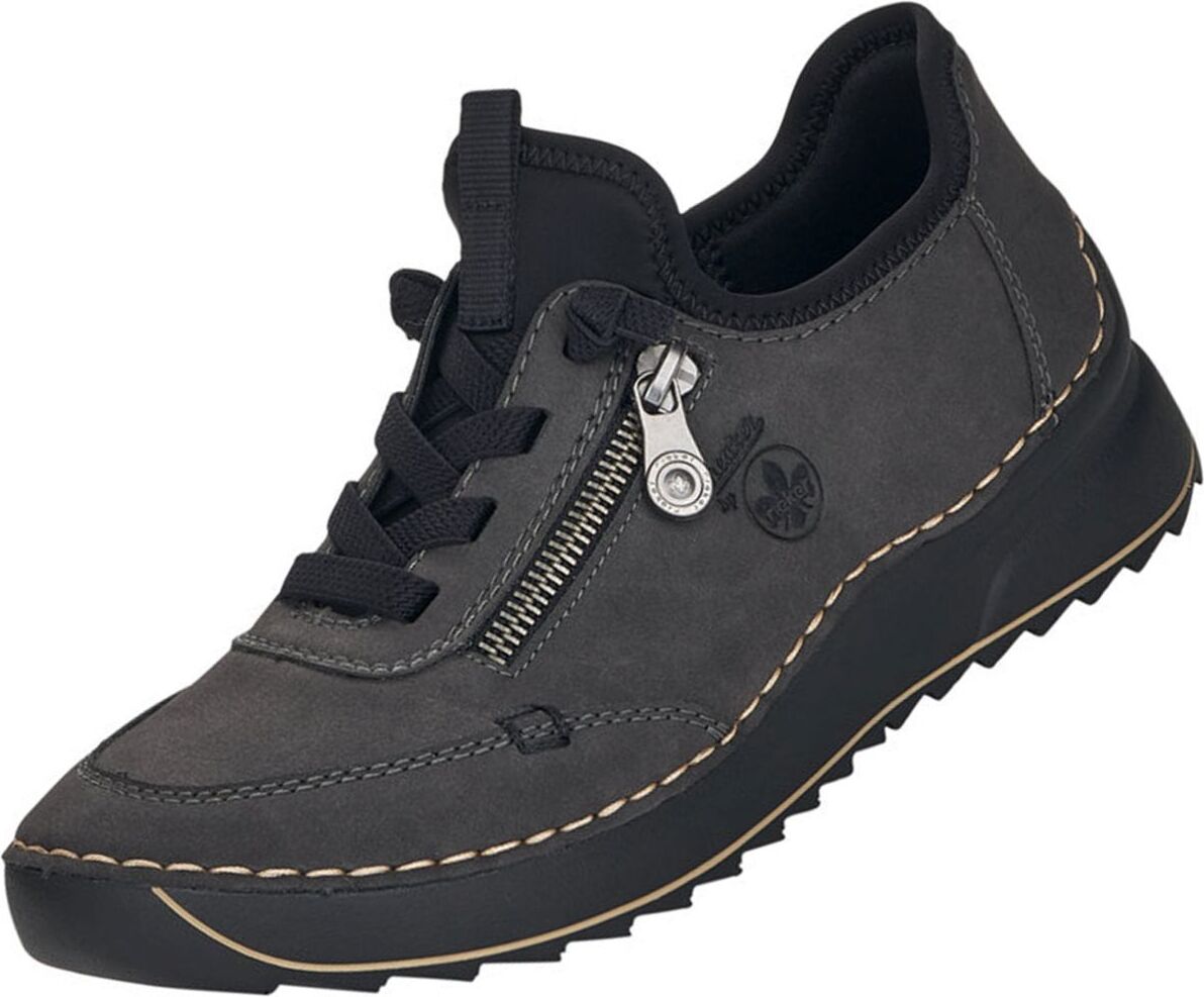 Entdecke sportlichen Style und hervorragenden Tragekomfort mit diesen grauen Rieker Sneakern. Die Kontrastnaht auf dem Nubuklederimitat-Obermaterial gibt diesem Schuh eine trendige Note, während die Schnürung für eine perfekte Passform sorgt. +