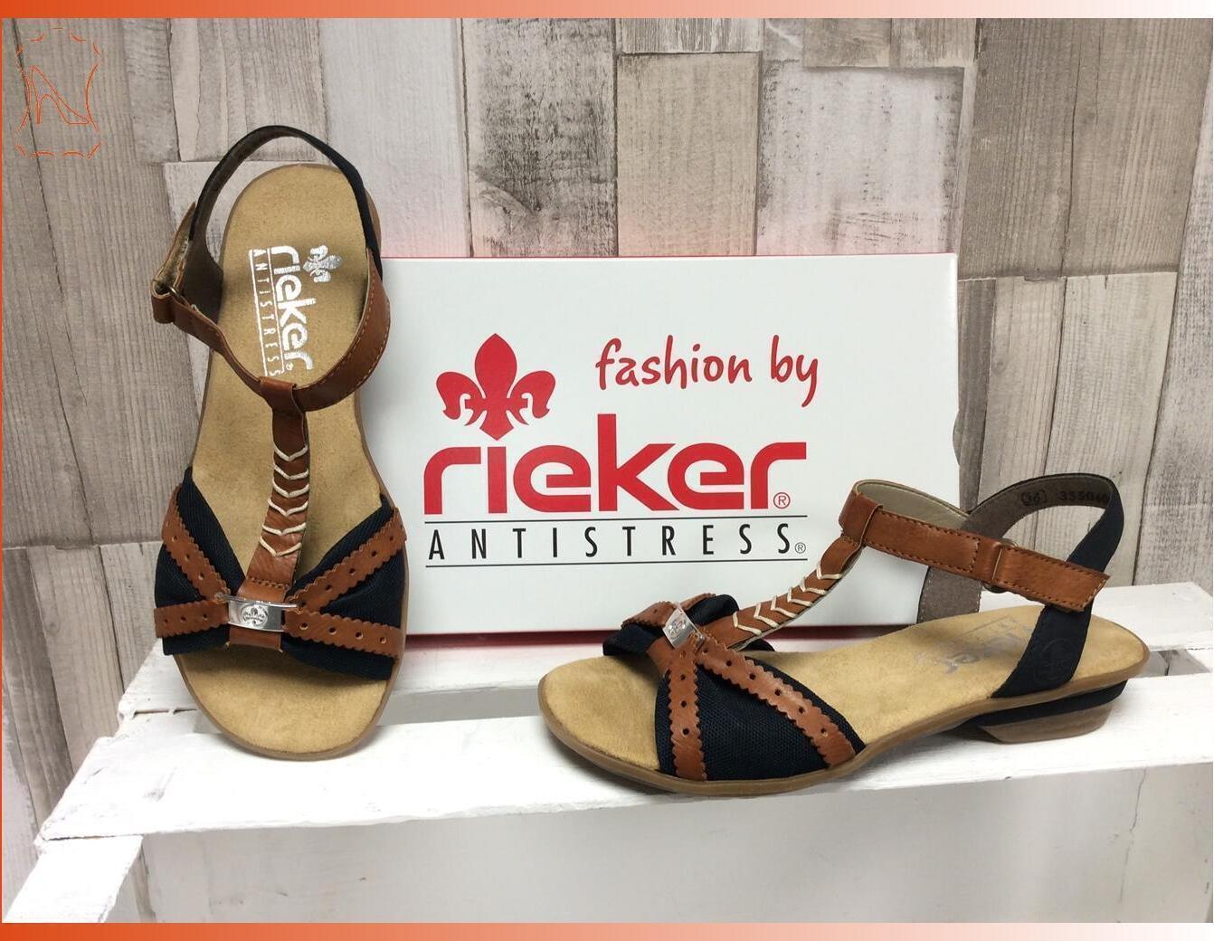 Die Rieker Sandalette in zweifarbiger Optik ist das perfekte Accessoire für jede elegante Lady. Die Farbkombination aus nachtblau und cognac verleiht dem Schuh eine besonders modische Note und macht ihn zum Hingucker des Outfits. Der Klettverschluss sorgt für eine optimale Anpassung an den Fuß und die Keilabsatzform garantiert einen angenehmen Tragekomfort. Ob im Büro oder zum Dinner, diese Sandalette passt einfach immer. +