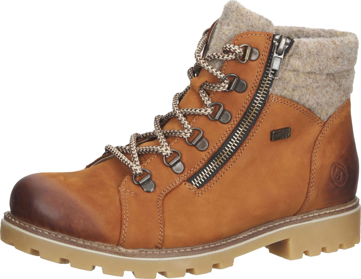 Mit den trendigen Remonte Winterboots im angesagten Bergsteiger-Look bist du nicht nur top gestylt, sondern auch perfekt für die kalten Wintertage gerüstet. Das braun-beige Obermaterial aus Leder und Filz ist nicht nur wasserabweisend, sondern auch atmungsaktiv und winddicht - so bleiben deine Füße stets warm und trocken. Das Innenmaterial aus Schurwolle sorgt zudem für eine angenehme Wärme und ein gemütliches Tragegefühl. +