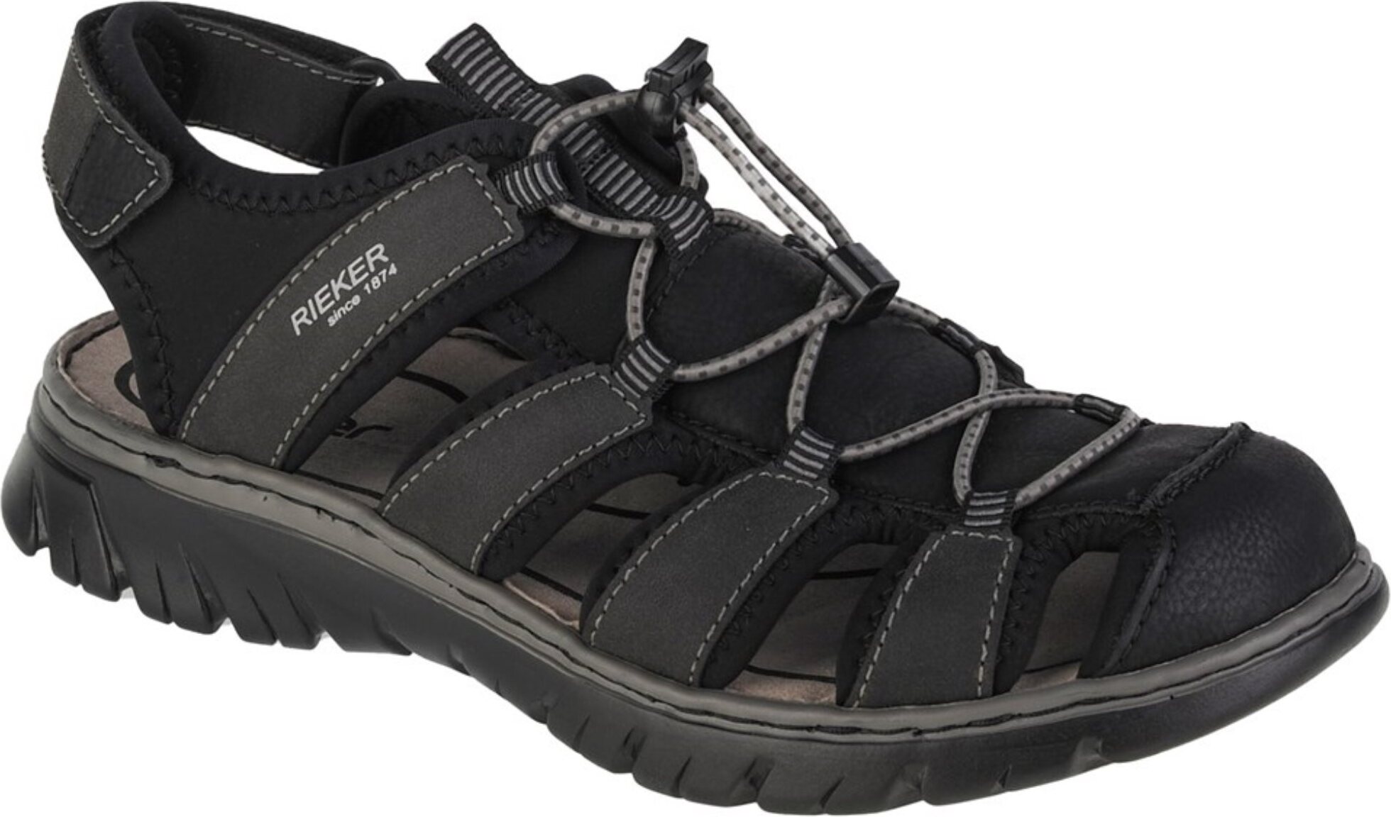 Erleben Sie den perfekten Mix aus Komfort und Stil mit den Rieker Sandalen Slippern für Herren. Das Obermaterial aus hochwertigem Synthetik und Textil in edlem Schwarz verleiht diesem Schuh eine elegante Note. +