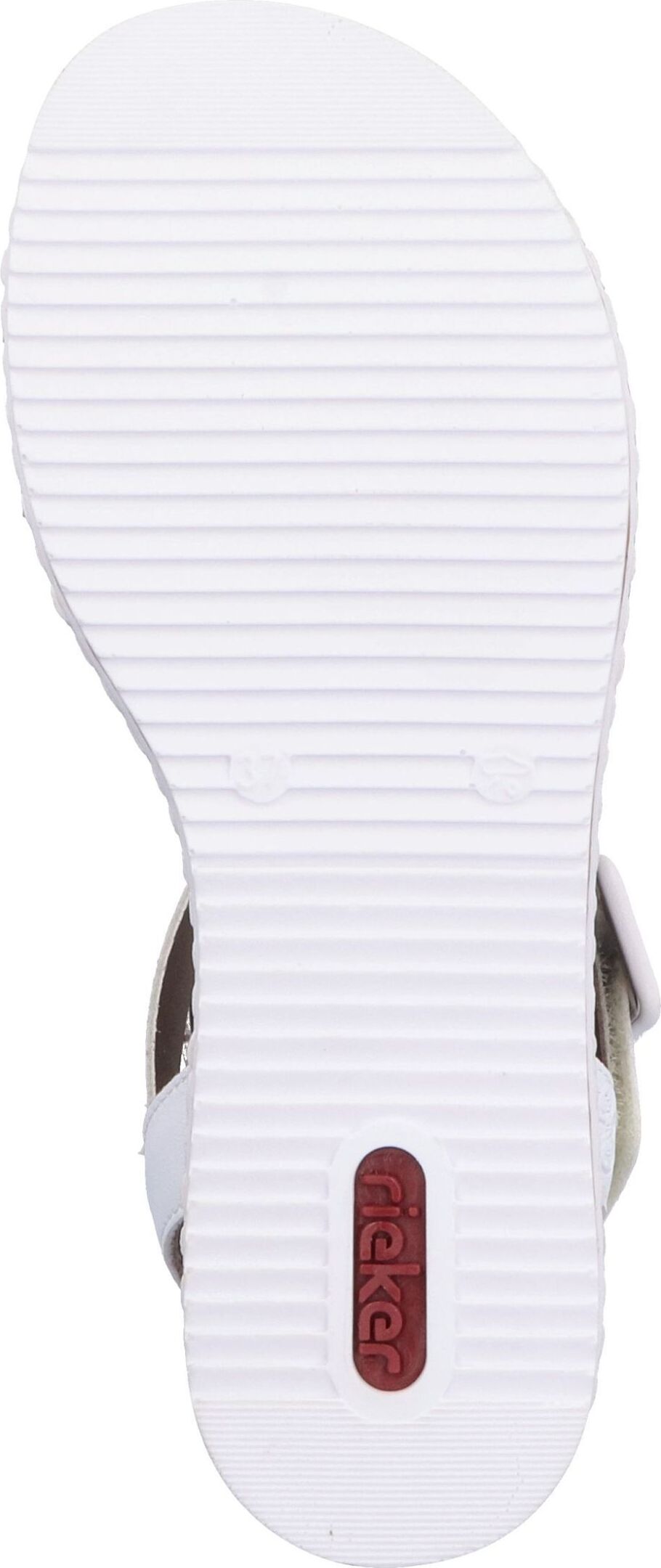 Entdecken Sie die perfekte Kombination aus Stil und Komfort mit der Rieker Keilsandalette in beige und weiß. Diese elegante Damen Sandale ist speziell für modebewusste Frauen entwickelt, die auch an warmen Tagen nicht auf einen lässigen Look verzichten möchten. +
