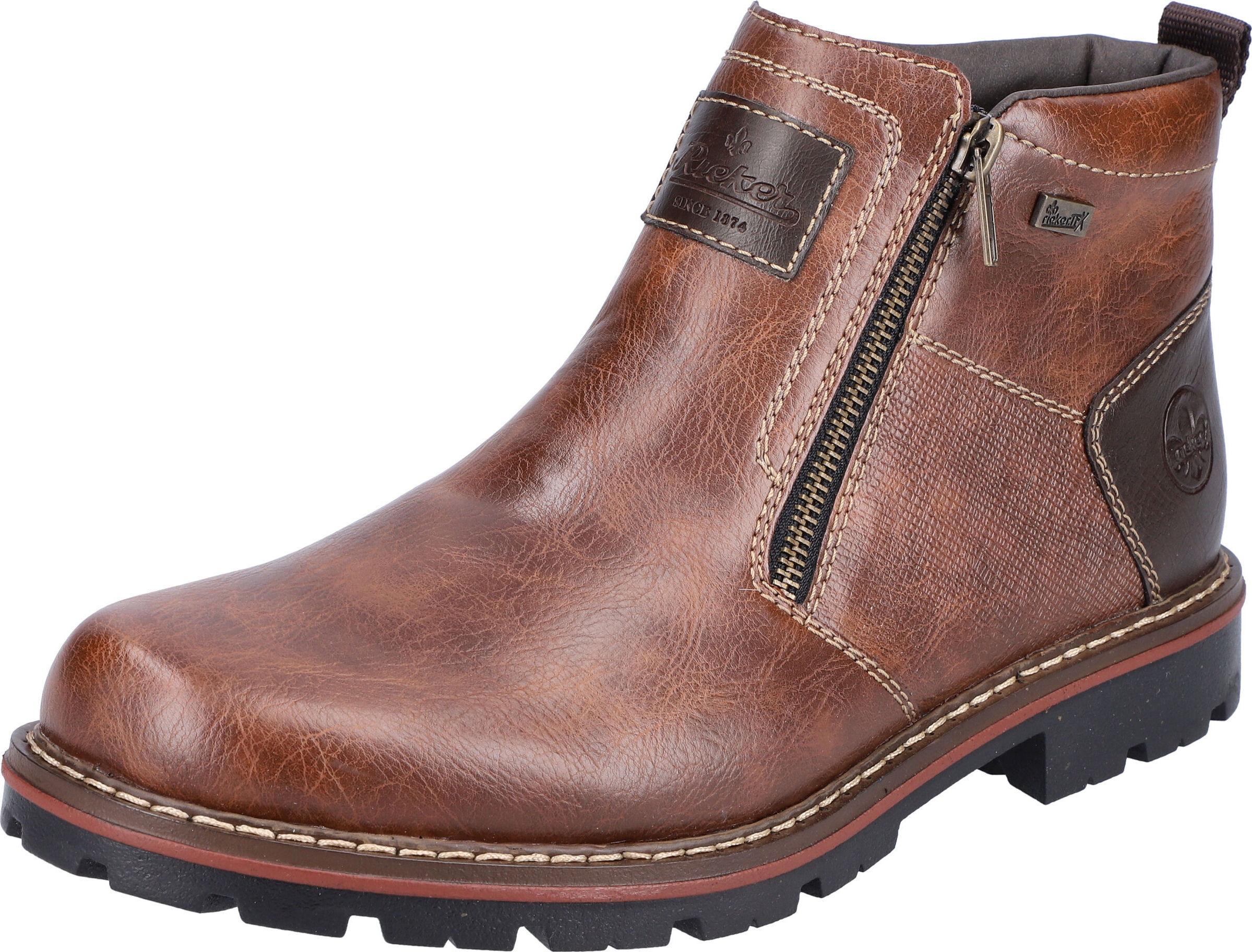 Die Stiefelette lässt sich einfach mit Reißverschlüssen schließen und verfügt über eine runde Schuhspitze. Die Innensohle ist aus Textil gefertigt und die Laufsohle aus Synthetik mit profiliertem Laufsohlenprofil. Die RiekerTEX-Membran garantiert zudem ein angenehmes Fußklima. Die Schuhweite ist normal und somit für viele Fußformen geeignet.