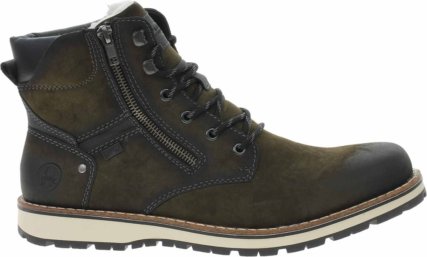 Entdecken Sie die perfekte Kombination aus Stil, Komfort und Funktionalität mit der Rieker Stiefelette in Grau und Grün – der ideale Begleiter für Herren an frostigen Tagen. +
