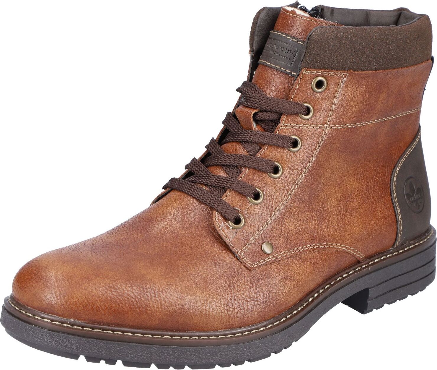 Entdecken Sie die perfekten Begleiter für kalte Tage: die braunen Rieker Schnürboots mit wärmendem Schurwollfutter. Diese stilvollen Stiefel vereinen modernes Design mit erstklassigem Komfort und hoher Funktionalität. Das karamellbraune Leder überzeugt durch seine zeitlose Eleganz, während die klassische Schnürung in Kombination mit einem seitlichen Reißverschluss für einfache Handhabung sorgt. +