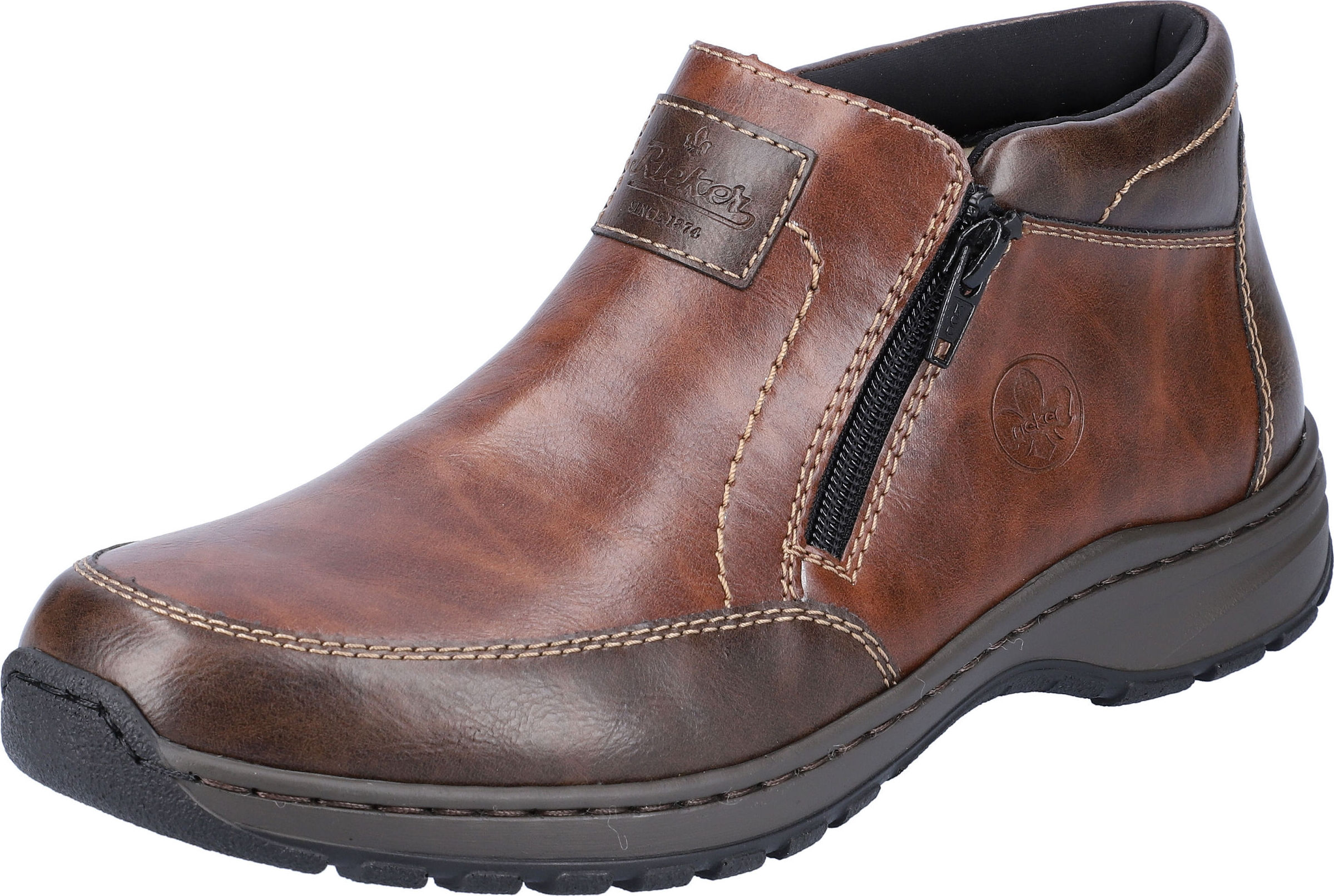 Diese Rieker Winterboots mit beidseitigen Reißverschlüssen in dunkelbraun sind der perfekte Begleiter für kalte Tage. Das robuste Obermaterial aus Lederimitat und das kuschelige Innenfutter aus Schurwolle sorgen für warme Füße auch bei eisigen Temperaturen. Der sportliche Stil wird durch die Logoprägung und die Ziernähte hervorgehoben und gibt dem Schuh einen modernen Look. +
