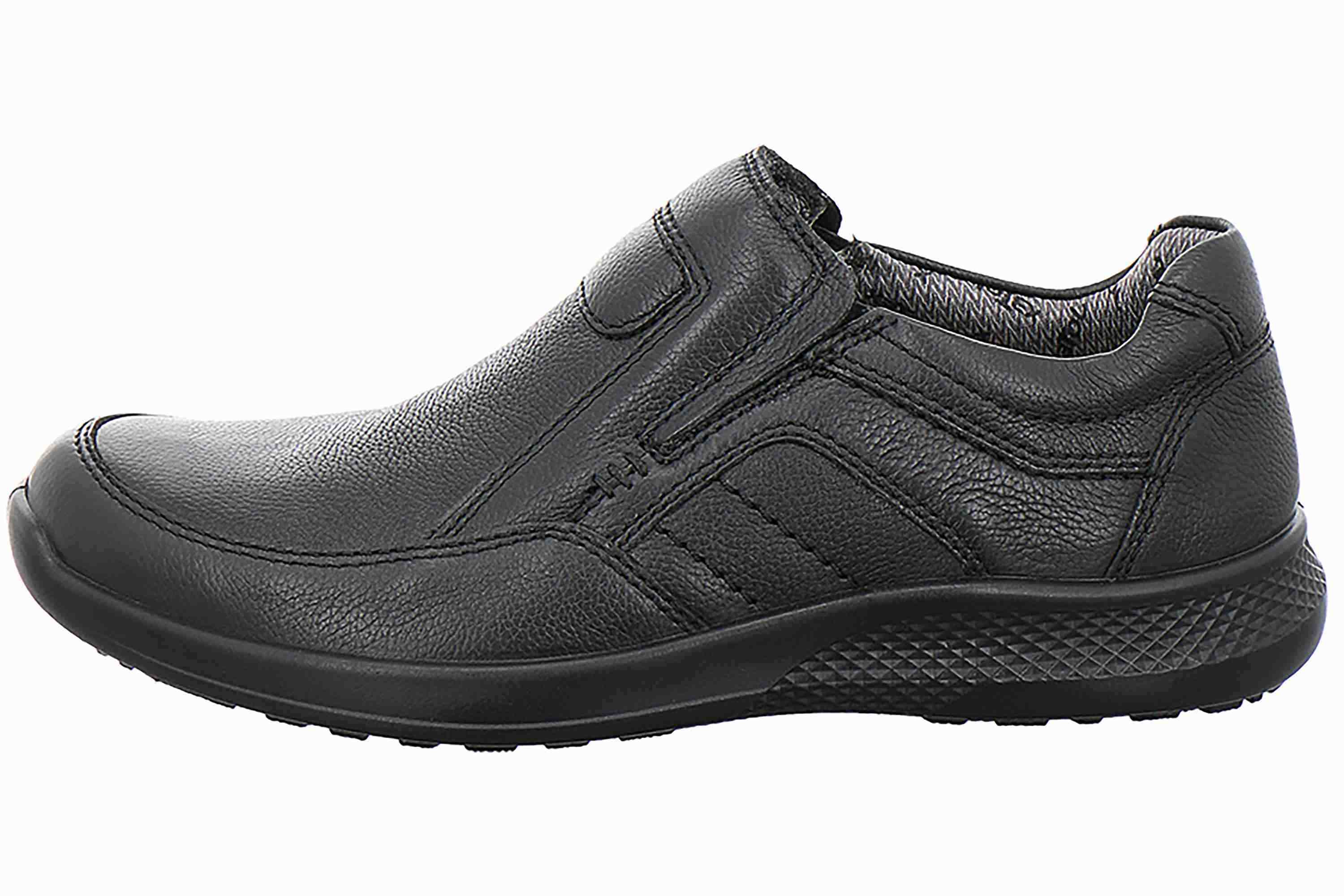 Ein Klassiker ist dieser Herren Slipper von Jomos.Er wurde aus Echtleder in Schwarz gefertigt. +