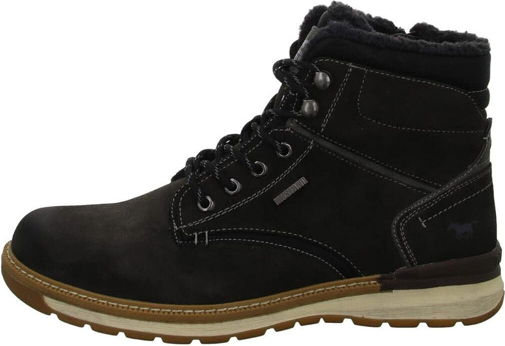 Mit den Mustang Shoes Schnürboots in anthrazitgrau sind Sie optimal für kalte Wintertage ausgestattet! Das Obermaterial besteht aus hochwertigem Nubuklederimitat, das nicht nur optisch überzeugt, sondern auch robust und pflegeleicht ist. Für angenehme Wärme und hohen Tragekomfort sorgt das kuschelige Warmfutter, das sowohl im Innen- als auch im Innensohlenbereich zum Einsatz kommt. Die Innensohle ist außerdem gepolstert, damit Sie auch bei längeren Spaziergängen nicht müde Füße bekommen. +