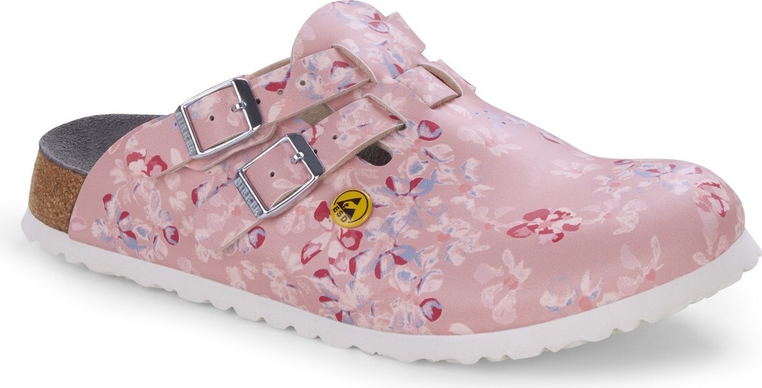 Nun wird der Clog in einer einzigartigen Farbe angeboten: Rosa. Das Blumenmuster auf dem Obermaterial verleiht dem Schuh einen floralen Charme und macht ihn zum perfekten Begleiter für Frühlings- und Sommer-Outfits. Doch nicht nur optisch überzeugt der Kay ESD Flower Clog von Birkenstock. +