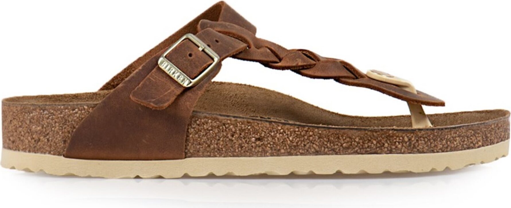 Erleben Sie den Sommer mit den eleganten und bequemen Birkenstock »Gizeh« Zehentrennern in geflochtener Optik. Diese Schuhe sind aus hochwertigem Nubukleder gefertigt und haben eine klassische, offene Zehenpartie. Der cognac-used Farbton verleiht dem Schuh eine zeitlose Eleganz, während der Schnallenverschluss für einen perfekten Sitz sorgt. Besonders hervorzuheben ist die geflochtene Optik, die diesen Schuh zu einem absoluten Hingucker macht. +