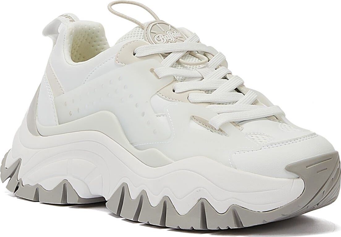 Entdecke die perfekten Kombination aus Trend und Komfort mit den Buffalo TRAIL ONE Plateausneakern in strahlendem Weiß. Diese Chunky-Sneaker setzen ein modisches Statement, das durch die ca. 4 cm hohe Plateau-Sohle noch unterstrichen wird – ideal für alle, die ihrer Fashion-Note den gewissen Extra-Watt geben möchten. +