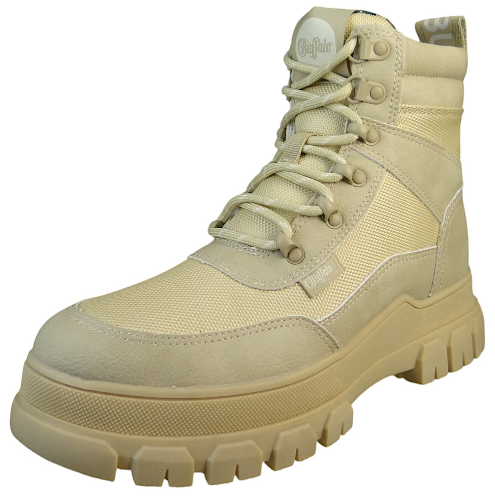 Entdecke die perfekten Begleiter für stilbewusste und aktive Frauen – die Buffalo NOVA COM VEGAN Schnürboots in elegantem Beige. Diese Stiefeletten vereinen nachhaltiges Design mit höchstem Komfort und Vielseitigkeit, damit du jeden Tag aufs Neue überzeugt bist. +