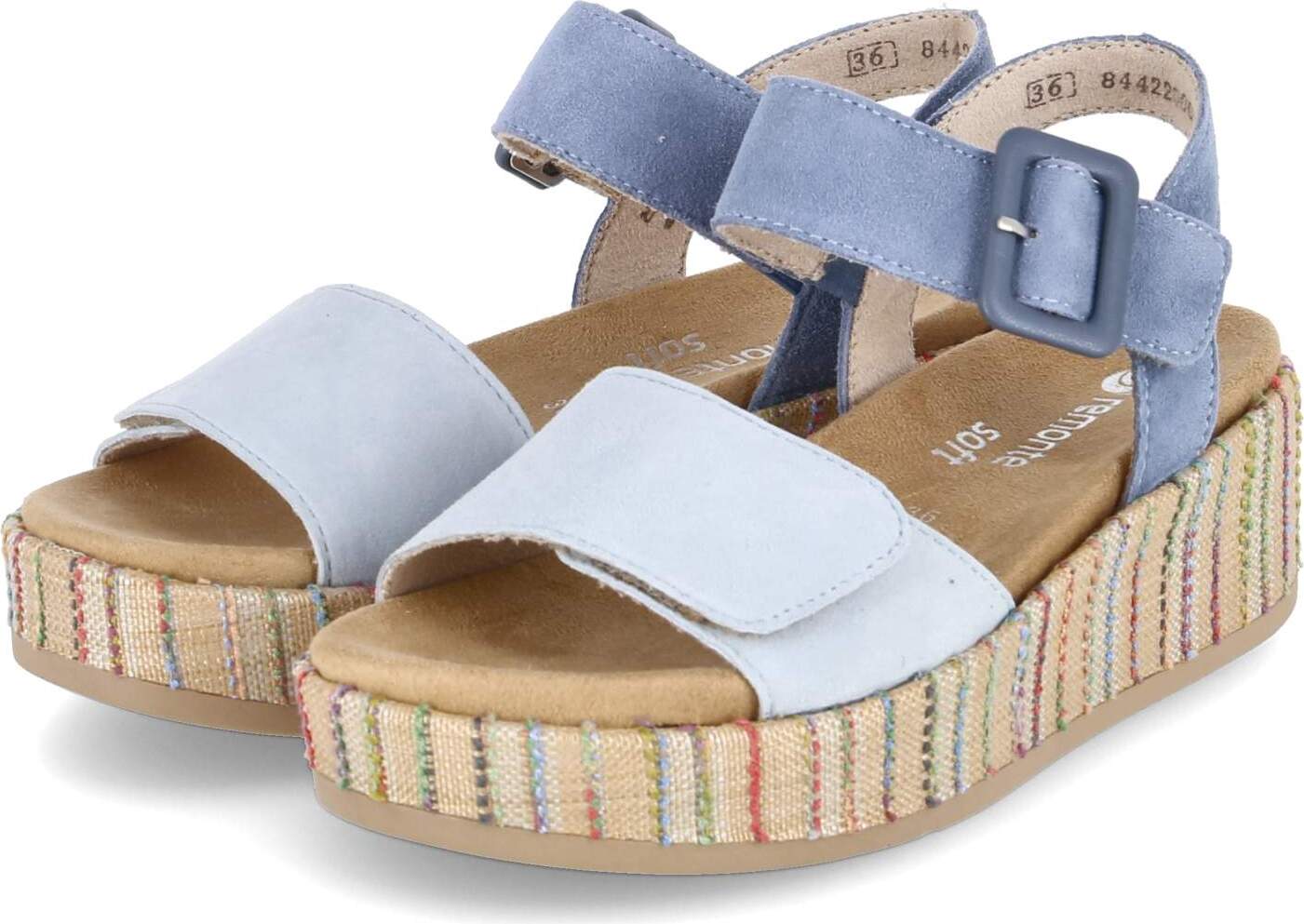 Entdecken Sie den perfekten Begleiter für sonnige Tage: die Remonte Riemchensandalen in elegantem Blau. Gefertigt aus hochwertigem Rauleder vereinen diese Sandalen modisches Design mit herausragendem Tragekomfort. Die breiten Riemen passen sich individuell an Ihre Füße an und sorgen für ein angenehmes, luftiges Tragegefühl – ideal für die warme Jahreszeit. +