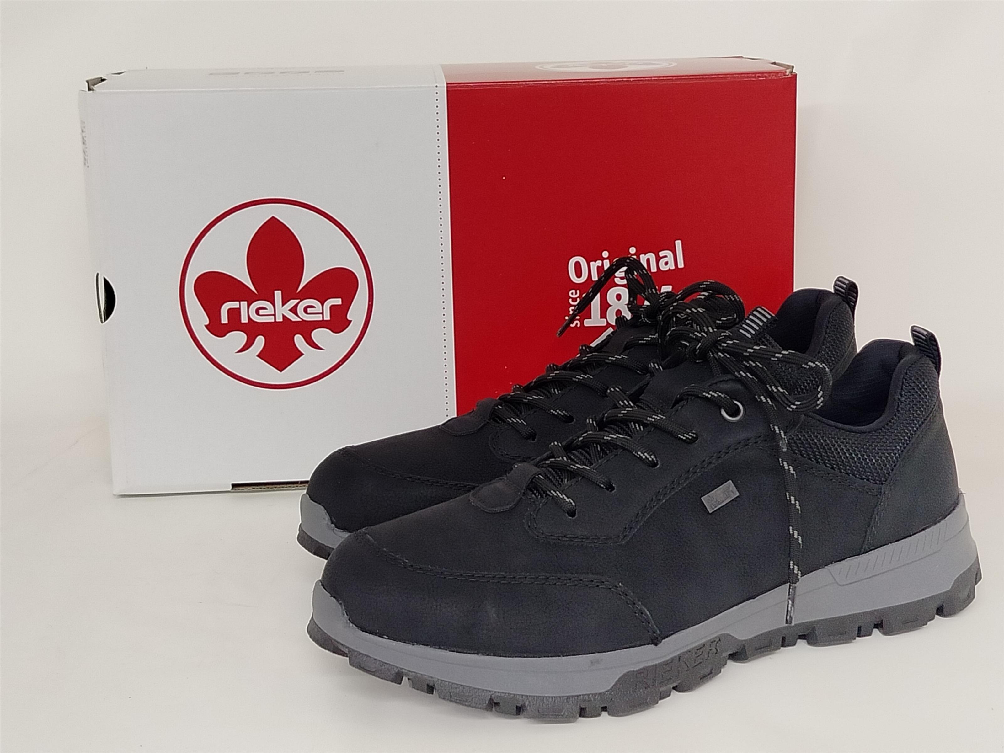 Der schwarze Rieker Halbschuh für Herren setzt auf sportliche Klarheit und praktische Features. +