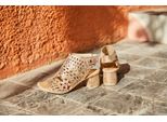 Der Blockabsatz verleiht den Sandaletten nicht nur Eleganz, sondern sorgt auch für Stabilität und Bequemlichkeit – perfekt für den Alltag und längere Tragephasen. In der Weite F gefertigt, sind diese Schuhe ideal für schmale bis normale Füße und kombinieren mühelos mit Sommer-Outfits wie Shorts, T-Shirts im Oversize-Look oder eleganter Business-Garderobe mit Bluse und Marlene-Hose.