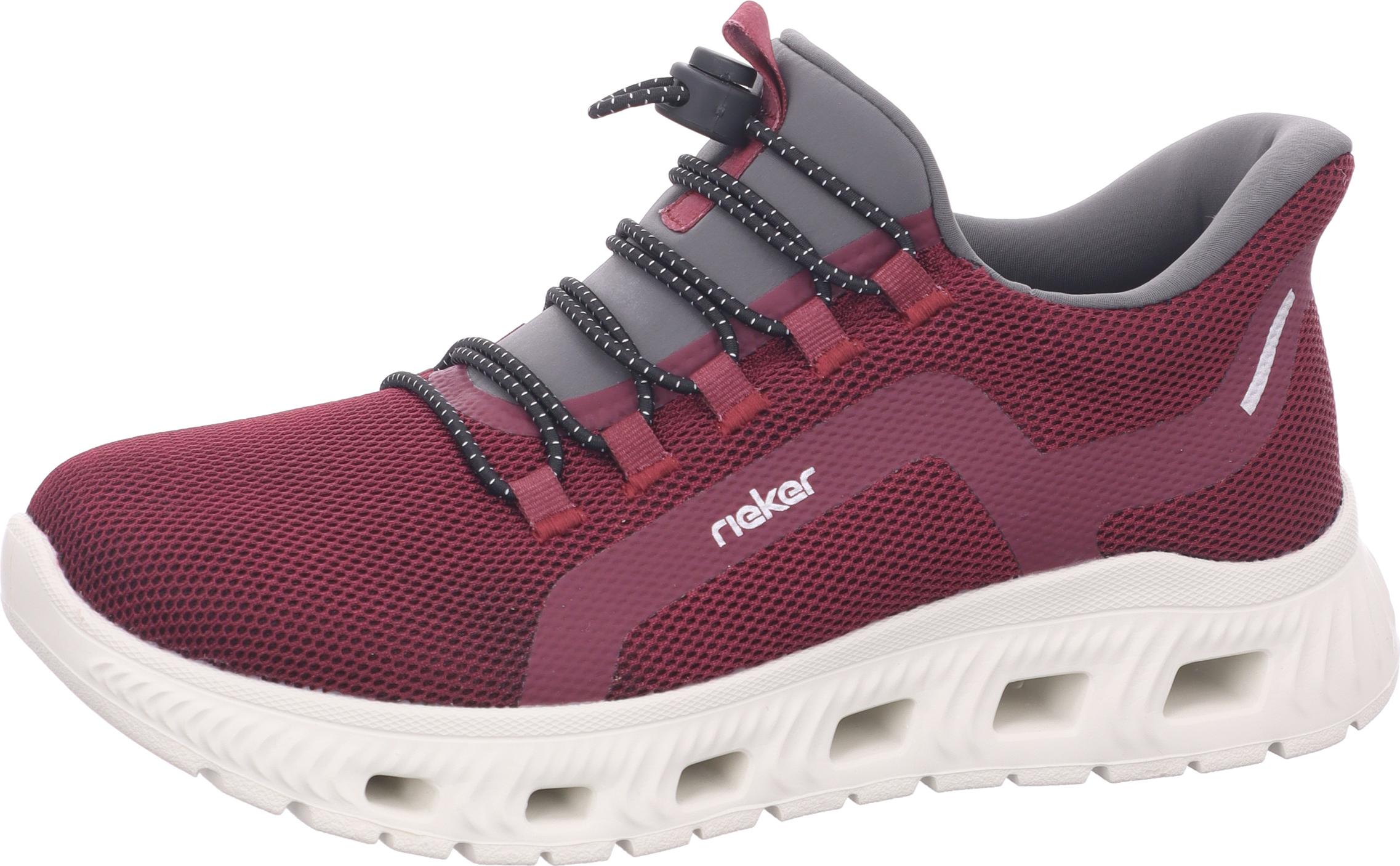 Entdecken Sie den perfekten Begleiter für Ihre Freizeitaktivitäten mit dem Rieker Slip-On Sneaker in einer modernen Beere-Grau-Kombination. Dieser sportliche Halbschuh vereint funktionales Design mit stilvollem Look und sorgt so für einen besonders angenehmen Tragekomfort. +