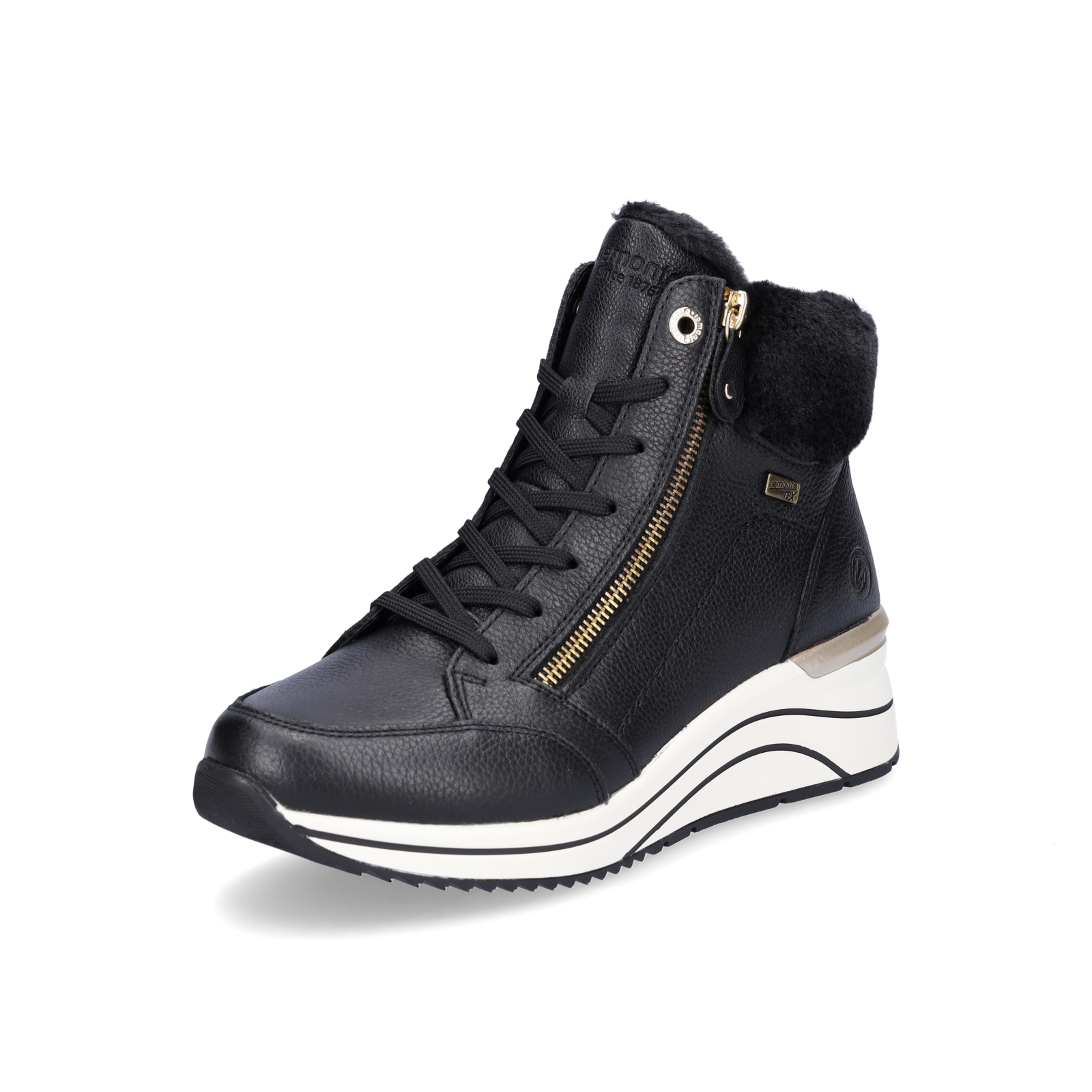 Erleben Sie stilvolle Wärme bei winterlichen Temperaturen mit der Remonte Winterstiefelette. Dieser elegante Schnürboot kombiniert klassisches Glattleder in Schwarz mit modernen Funktionen, die Ihren Komfort ins Zentrum stellen. Die wasserabweisende (schwarz) Oberfläche schützt Sie effektiv vor Feuchtigkeit, sodass Sie auch an nassen Tagen stilsicher unterwegs sind. Das markante Design wird durch den modisch akzentuierten Fellkragen am Schaft perfekt in Szene gesetzt, während die Schnürung in Kombination mit einem seitlichen Reißverschluss jederzeit für sicheren Halt sorgt. +