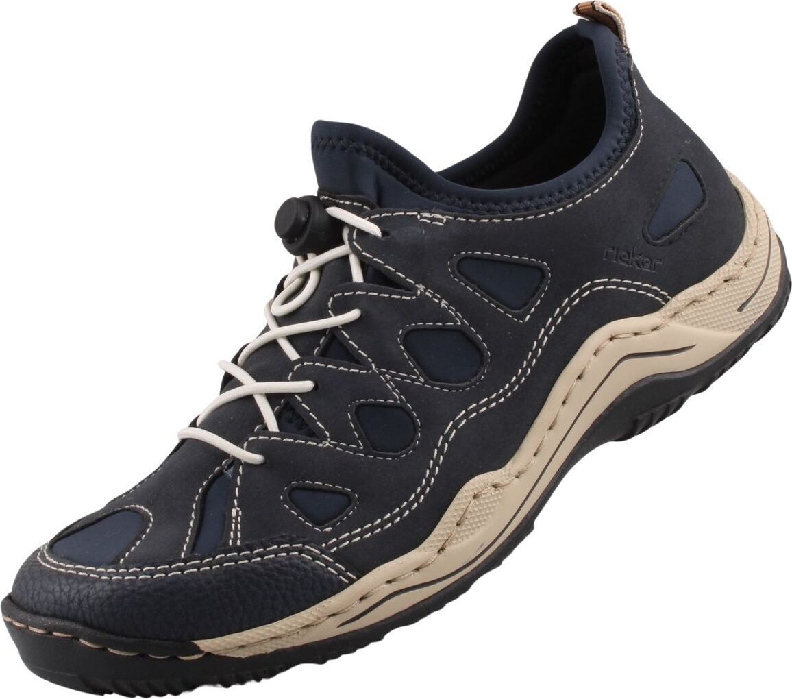Genießen Sie Ihren aktiven Lebensstil mit dem Rieker Slip-On Sneaker Trekking Schuh in einem tiefen Nachtblau. Hergestellt aus hochwertigem Nubuklederimitat und Textil ist dieser Slipper nicht nur unglaublich bequem, sondern auch strapazierfähig für all Ihre Abenteuer. Das Innenmaterial aus Textil sorgt für Atmungsaktivität, während das Wechselfußbett zusätzlichen Komfort bietet. +