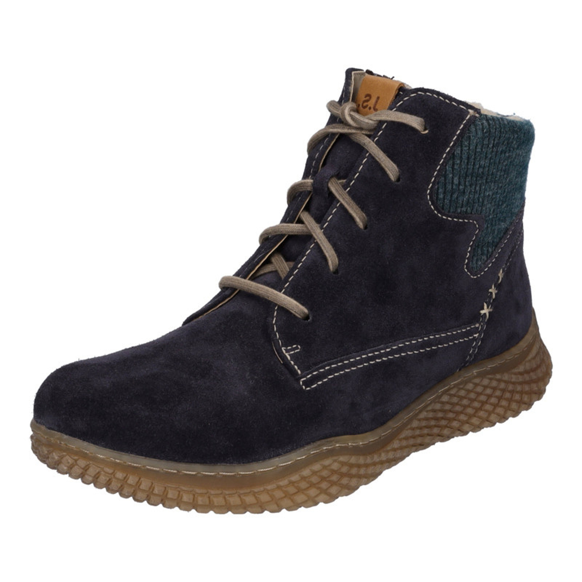 Mit Josef Seibel AMELIE 09 Winterboots in jeansblau bist du bereit für jede Herausforderung, die der Winter an deine Füße stellt. Die sportlich gehaltenen Schuhe sind mit einem fusselfreien Strickkragen ausgestattet, der nicht nur stylisch aussieht, sondern auch idealen Schutz gegen Kälte bietet. Das Obermaterial aus Textil und Veloursleder ist robust und bietet einen Kontrastbesatz sowie Kontrastnähte, die die Schuhe zu einem echten Hingucker machten. +