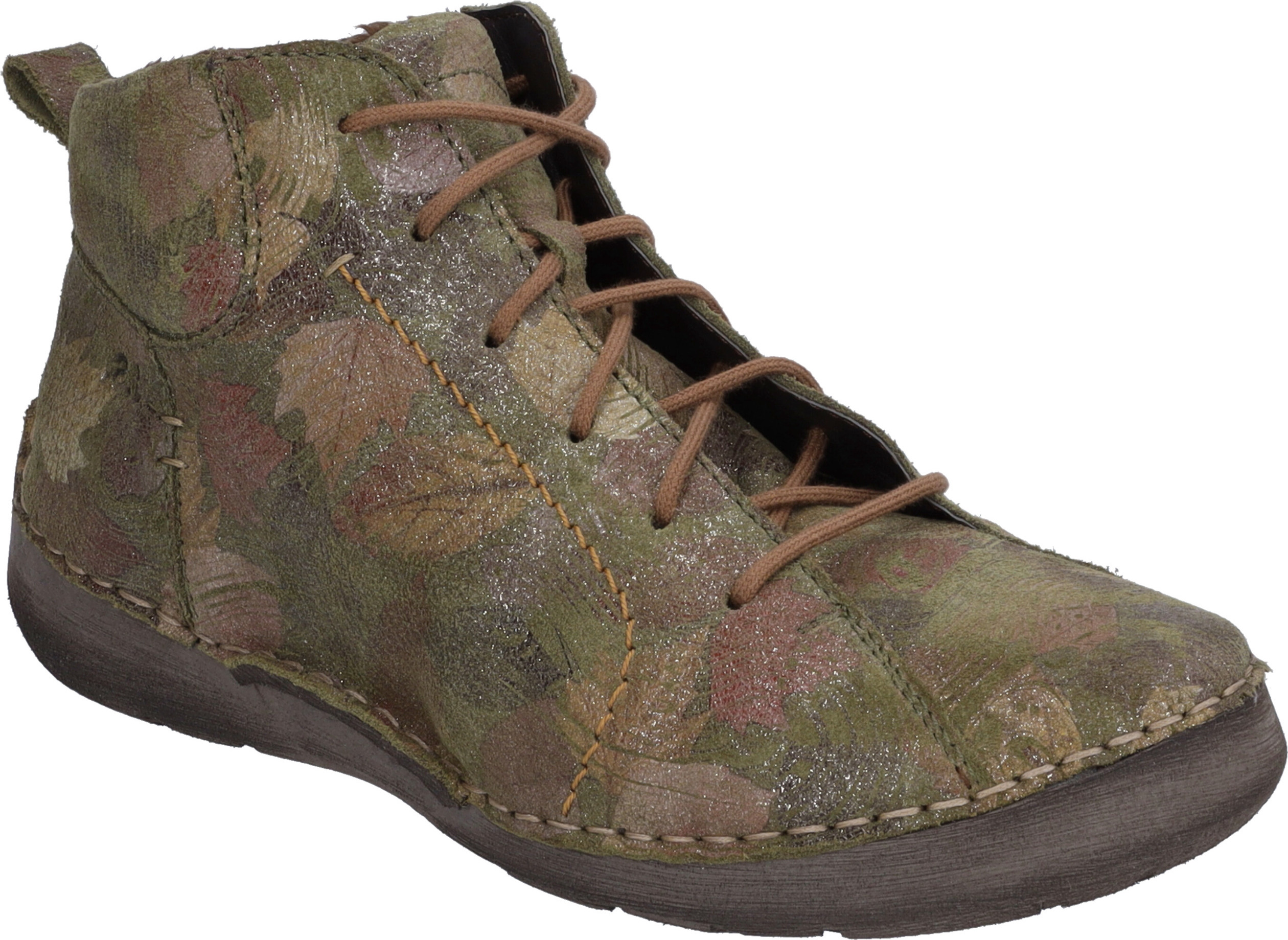 Die Josef Seibel FERGEY 97 Schnürboots sind mehr als nur ein Alltagsbegleiter. Mit ihrem khaki-kombinierten Leder-Obermaterial und dem besonderen Print wird jeder Schritt zum Hingucker. Die bequeme Passform und die leichte Profilsohle bieten einen hohen Tragekomfort. +